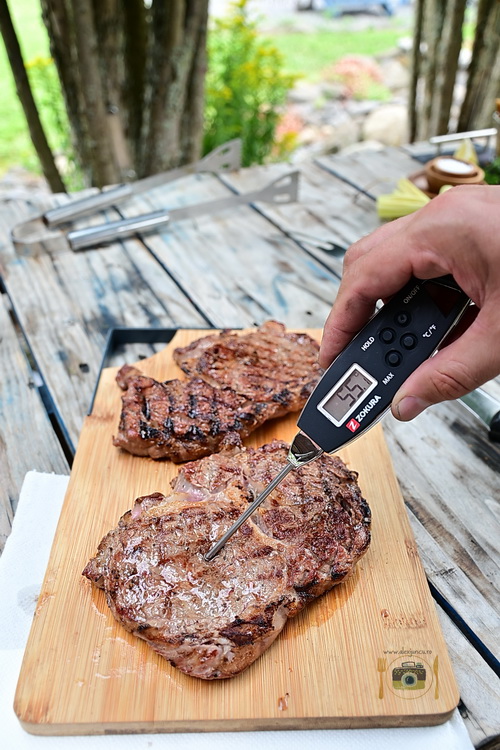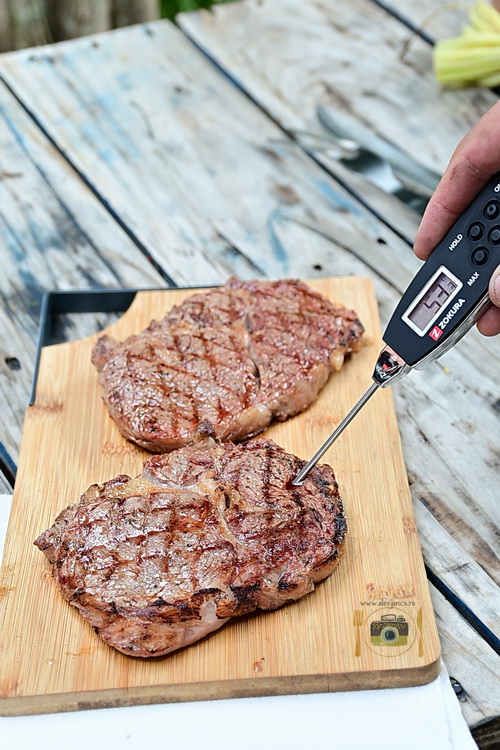 - Nu merge cu încercatul? atunci folosește un termometru digital de carne pentru a obține temperatura potrivită.Temperatura potrivită este un medium rare perfect roz și suculent, este 55-57 grade Celsius. Dacă iei carnea de pe grătar atunci când ajunge la 53-55 de grade și o lăsați la odihnă e perfect.