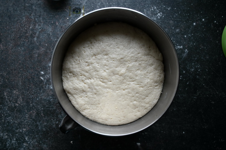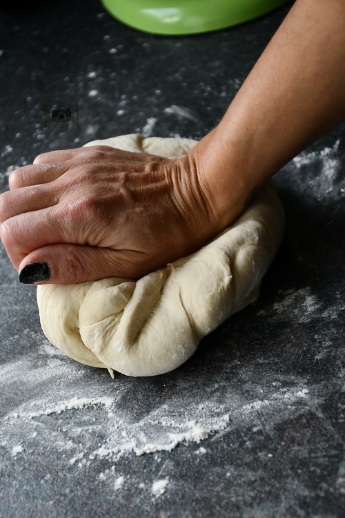 - Step 4 Când aluatul este crescut adaugă niște făină pe masa de lucru și frământă încă vreo câteva minute.
