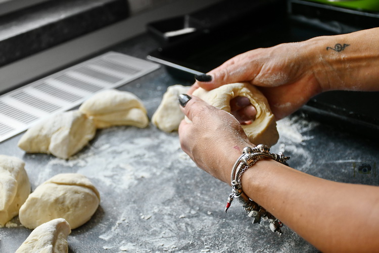 - Step 9 Pornești cuptorul la 210 ° C. Pregătește 2 tăvi cu hârtie de copt. Vei așeza 4 covrigi pe fiecare tavă.