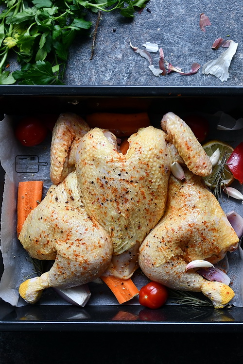 Și ca să nu fie singuri am făcut și un pui la cuptor, dacă tot era pornit cuptorul.