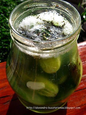 Am facut, insa din cauza caldurii nu au iesit. Dupa 4 zile in soare castravetii au un gust ciudat si vorbesc singuri cum spunea bunica. S-au acrit rau de tot. Cei drept am facut si plecat de acasa, probabil aveau spuma la 2 zile. Mai fac o incercare, sper sa imi iasa.