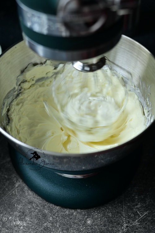 Lovim tava de masă de câteva ori până se nivelează crema și ies toate bulele de aer.