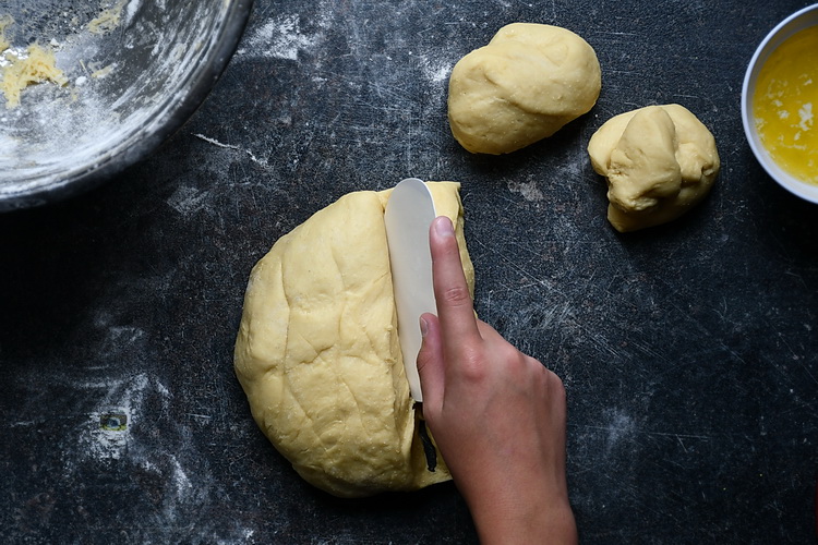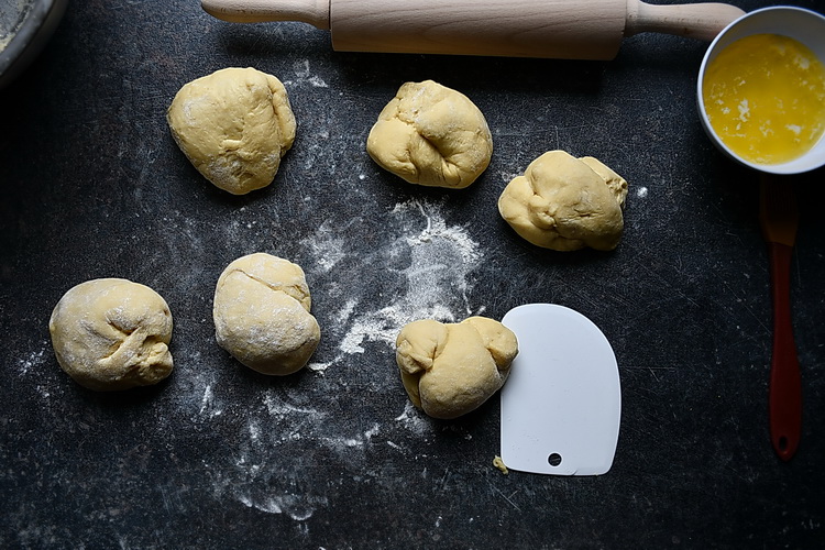Apoi împarți aluatul în 6 bucăți egale.