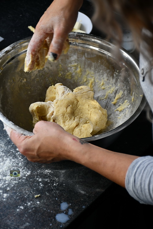 Pentru că e mai mult de frământat, tăiat, învârtit am pus băieții la treabă. La urma urmei este desertul lor.