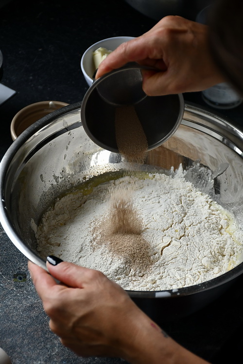 - Step 2 Adaugi apoi coaja de lămâie, făina și drojdia.