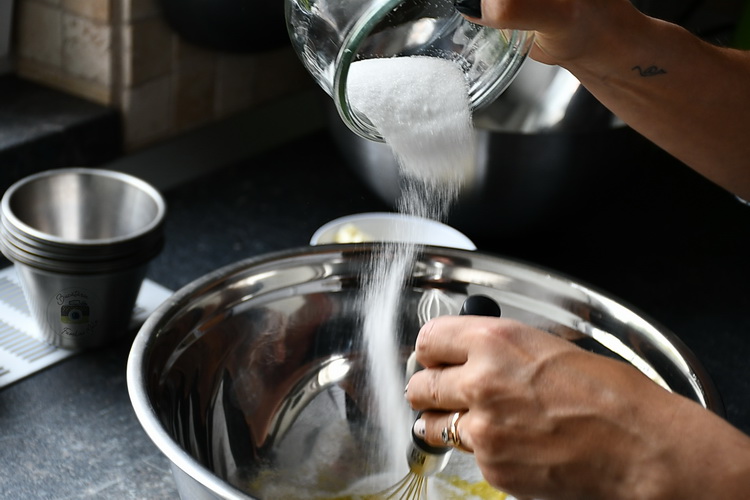 Când sunt gata le scoți din cuptor și le lași vreo 2-3 minute să se odihnească. Pui zahăr fin într-un bol și tăvălești fiecare cruffin. E important să fie fierbinți deoarece așa zahărul se lipește mai bine.
