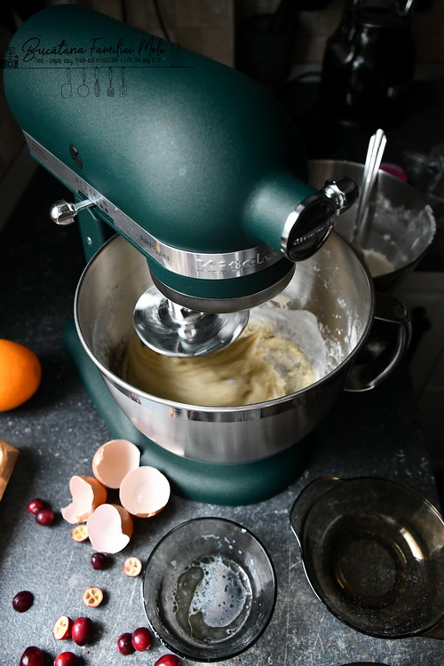 Între timp ungi cu unt și tapetezi cu făină o tavă dreptunghiulara 35 X 25 sau folosești hârtie de copt.