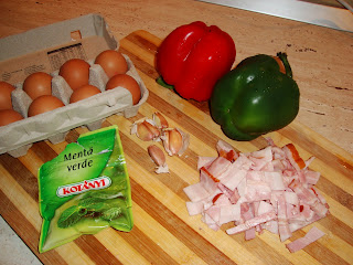 Aveți nevoie de câteva oua , puțin kaiser sau șuncă (orice folosiți , afumat să fie) , ardei, usturoi, și menta verde.