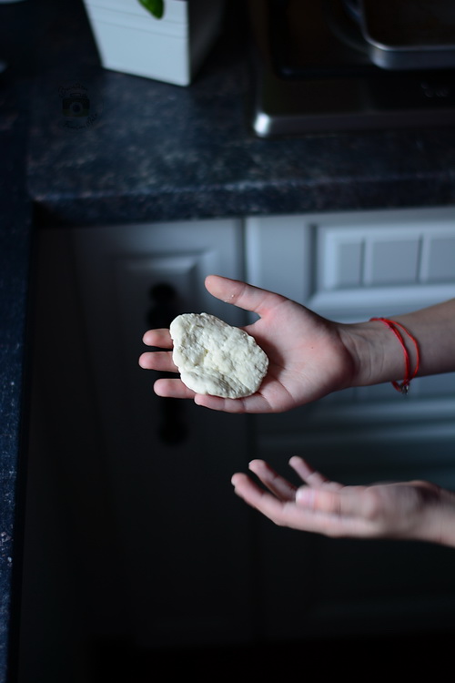 - 250 gr. făină (o cană) și ceva mai mult pentru frământat