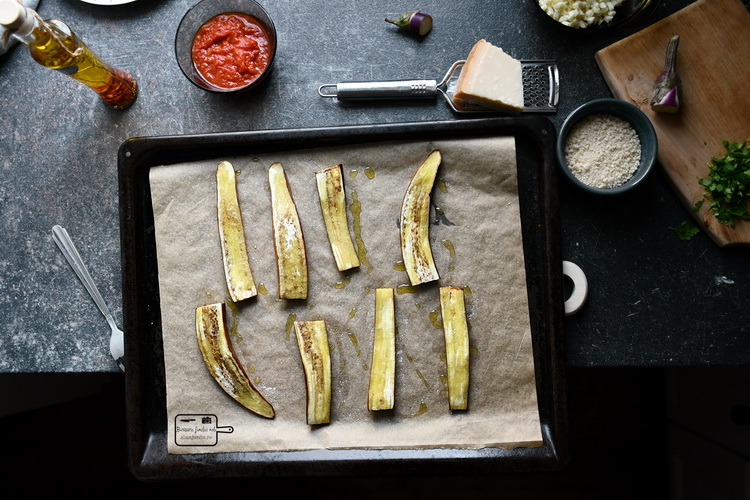 Acoperiți jumătățile de vinete cu amestecul de pesmet, apoi dați la cuptor încă 10-12 minute până când se rumenesc.