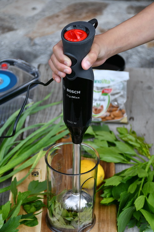 Mai departe vă povestesc despre rețeta mea de pesto de leuștean. Până nu uit! SanoVita și Bosch au un coș de produse ca al meu de dat. Urmăriți pe pagina mea de FB ce aveți de făcut 🙂