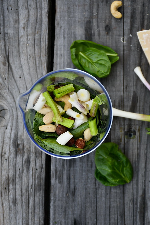 - Step 5 În sfârșit, se adaugă nucile prăjite și usturoiul. Când faceți asta să aveți aproape uleiul de măsline