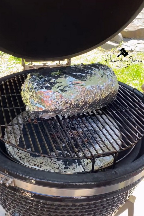 Pune-o înapoi pe grătar și mai las-o câteva ore, până când ajunge la 92–95°C intern.