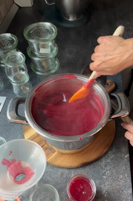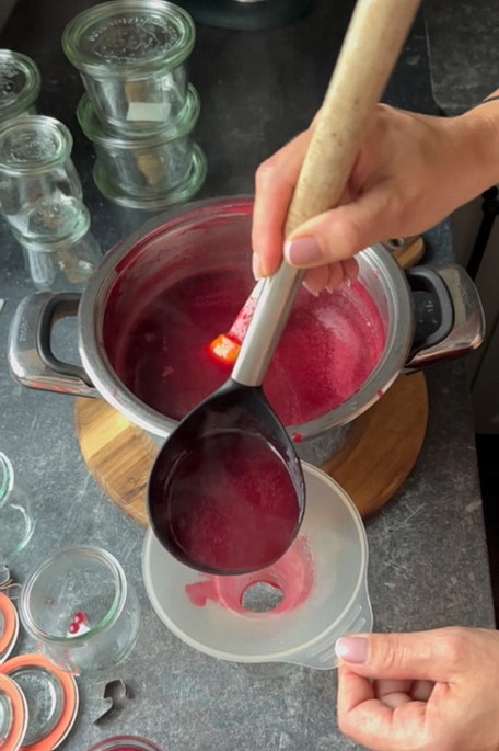 Ia oala de pe foc și toarnă gemul fierbinte în borcane curate și uscate.