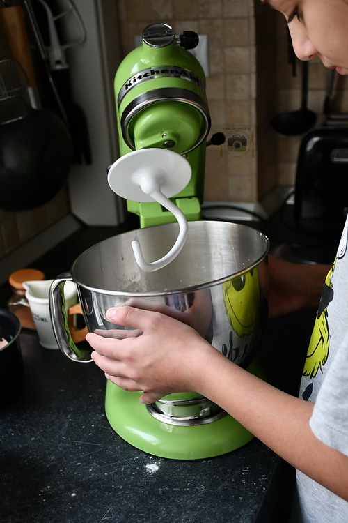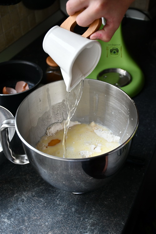- Step 3 Pornește mixerul și amestecă bine. Adaugă apoi restul de făină și amestecă până obții un aluat dens.
