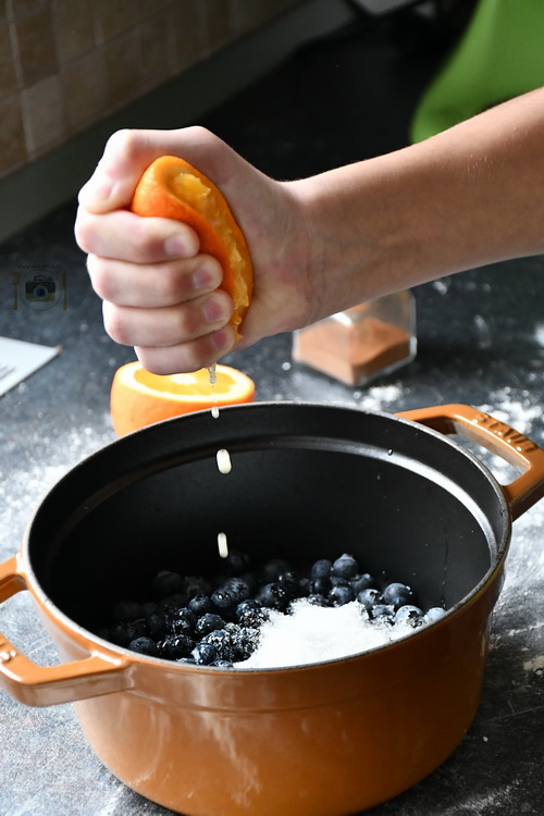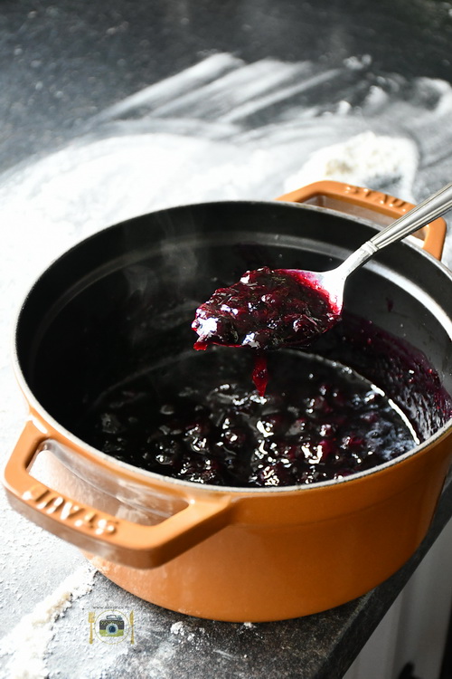 Cât timp aluatul stă liniștit pregătește sosul de afine.