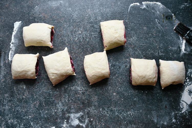 - Step 10 Așează rulourile în tava unsă cu unt și presărată cu făină. Și cu hârtie de copt.