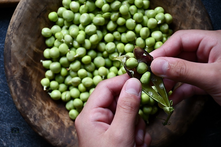 Ai mazăre proaspătă ai valoare. Cureți mazărea și o pui deoparte.