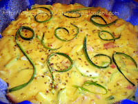 Turnăm în formă şi dăm la cuptorul încins la 180°, timp de 40 minute. Dacă doriți să-l ornați puteți folosi cojile de zucchini.