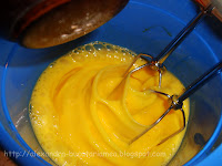 iar într-un alt bol cu ajutorul mixerului sau al unui tel, batem ouăle, după care adăugăm laptele şi uleiul