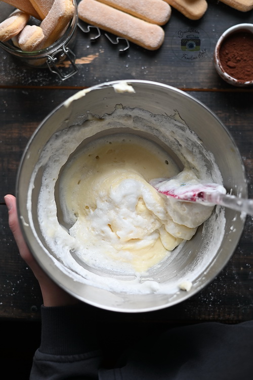 Se adaugă apoi crema mascarpone și se amestecă din nou.