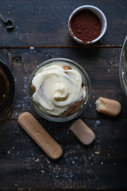 Pişcoturile se înmoaie rând pe rând  în espresso. Să aveți grijă espresso-ul să fie rece, pentru că altfel pişcoturile vor absorbi prea mult și nu doriți acest lucru. Prea mult espresso în pişcoturi va face un tiramisu moale și mult prea însiropat.