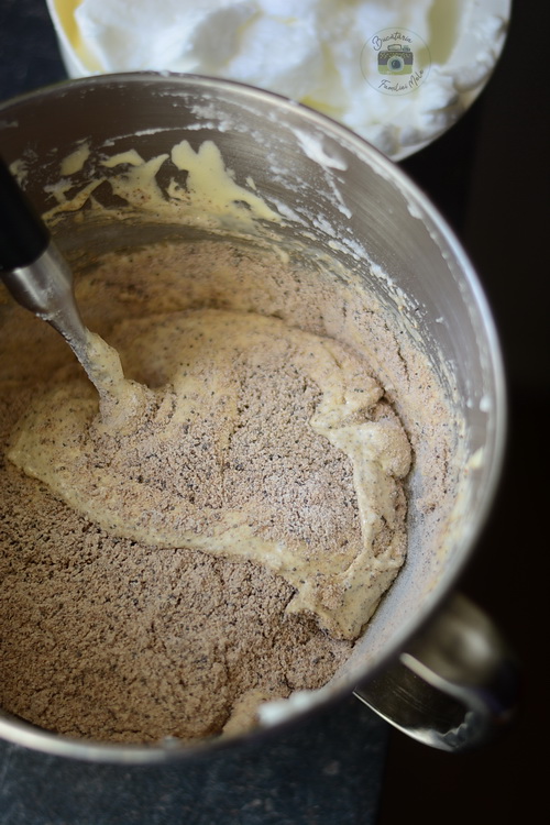 - Amestecați făina de migdale cu făina, praful de copt, semințele de mac și sarea. Puneți vasul deoparte.